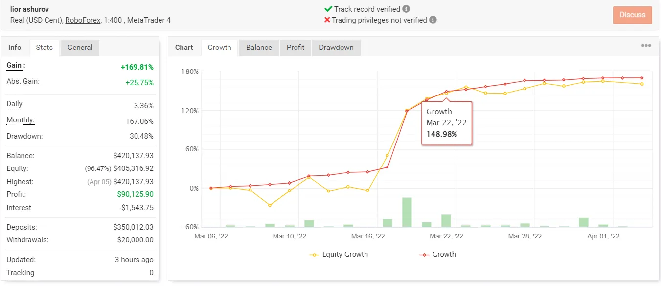 על בסיס נתוני עבר, הבוט מייצר רווח של 3% אחוז בחודש אחרי הוצאות מנוי ומיסים.